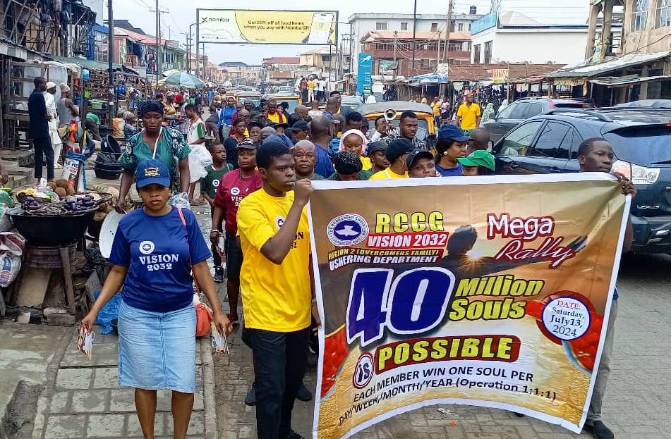 The Vision 2032 Planning Committee Chairman, Taiwo Adewunmi, reiterated the importance of evangelism and awareness, while Regional Head Usher, Anthony Oluwajobi, emphasized the need to fulfill the Lord’s commandment to preach the gospel to the whole world. “We are going to have 40,000 parishes with a minimum of 100 members,” Adewunmi explained. “If you multiply 40,000 by 100, you get a minimum of 40 million. What we are doing today is just evangelism, to create awareness for what we call the expansive drive for growth for the RCCG.”